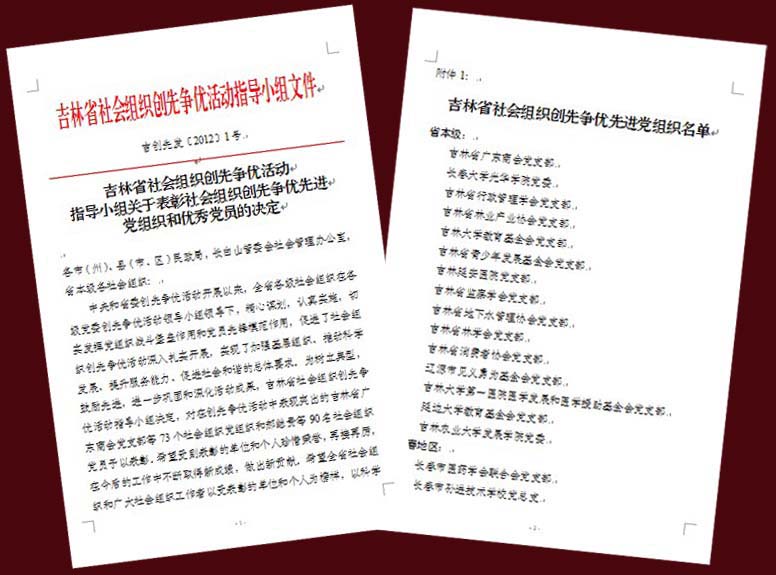吉林省社會組織創(chuàng)先爭優(yōu)先進黨組織稱號