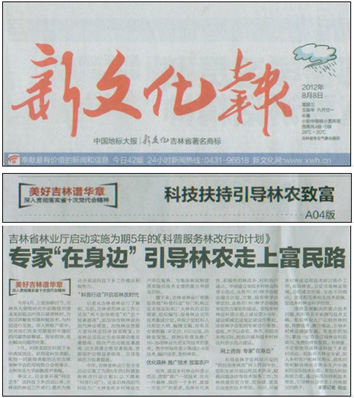 2012年8月8日,《新文化報(bào)》、《新文化網(wǎng)》分別以《專家在“身邊”引導(dǎo)林農(nóng)走上富民路》和《“科普行動(dòng)”開啟后林改時(shí)代引導(dǎo)林農(nóng)致富》為題,報(bào)道了“科普服務(wù)林改行動(dòng)”。全文如下: