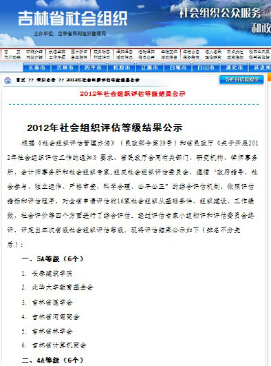 2012年社會(huì)組織評(píng)估等級(jí)結(jié)果公示