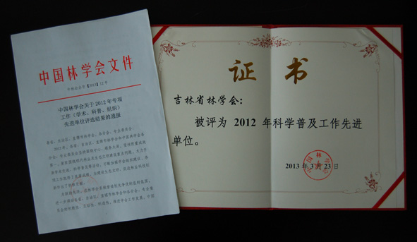 在2013年3月23日召開的全國林學會秘書長會議上,吉林省林學會因科普工作突出而連續(xù)第3年被中國林學會評為2012年科學普及工作先進單位。
