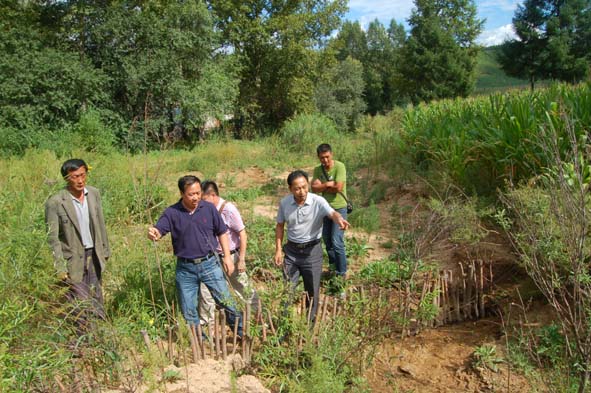 侵蝕溝生態(tài)治理是2012年省林學(xué)會的幫扶項目?;I措資金4萬元,對危害最為嚴(yán)重的侵蝕溝采取林業(yè)措施進(jìn)行生態(tài)治理。由于當(dāng)年雨水較大,山水下流較急,造成部分栽植插條被沖毀,林業(yè)措施受損,致使生態(tài)治理效果受到影響。經(jīng)與鄉(xiāng)村協(xié)商,決定今年春季由村里組織進(jìn)行補(bǔ)植。