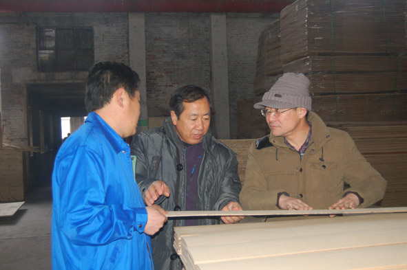 實(shí)地查看科普設(shè)施建設(shè)情況,參觀考察金橋木業(yè)和三岔子刨花板生產(chǎn)情況