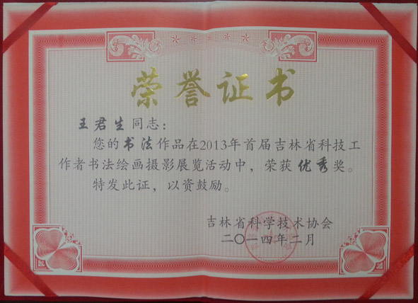 為慶祝建黨92周年,抒發(fā)廣大科技工作者的愛黨愛國情懷和民族自豪感,展示科技工作者精神風(fēng)貌和精湛的書畫、攝影技藝,培育健康向上的科協(xié)文化,省科協(xié)于2013年8月至2014年2月舉辦首屆吉林省科技工作者書法、繪畫、攝影展覽。吉林省林學(xué)會因組織力度大、選送作品好而被授予優(yōu)秀組織單位。吉林省林學(xué)會選送的周樹林書法作品被評為一等獎(jiǎng),姜振東、王君生書法作品和李鵬攝影作品分獲優(yōu)秀獎(jiǎng)。