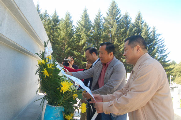 向楊靖宇將軍紀(jì)念碑敬獻(xiàn)花籃