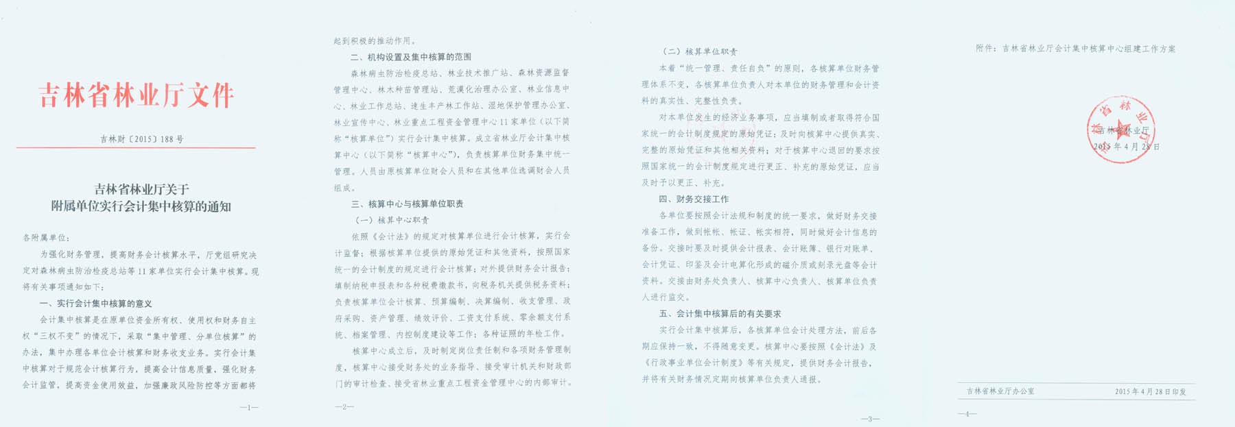 附:吉林省林業(yè)廳關(guān)于附屬單位實行會計集中核算的通知