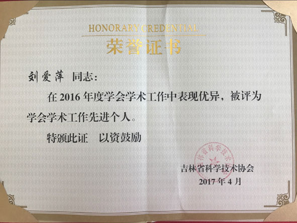 全省學(xué)會(huì)學(xué)術(shù)工作先進(jìn)集體、先進(jìn)個(gè)人證書