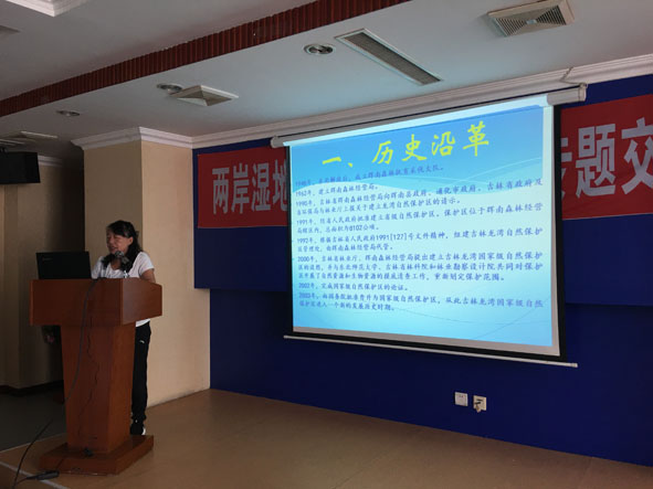 2017年7月15日,吉林省林學(xué)會(huì)與臺(tái)灣森林休憩保育協(xié)會(huì)在吉林龍灣國(guó)家級(jí)自然保護(hù)區(qū)管理局共同舉辦兩岸濕地保護(hù)與生物多樣性專題交流會(huì)。吉林省林學(xué)會(huì)理事長(zhǎng)王志新到會(huì)講話,吉林龍灣國(guó)家級(jí)自然保護(hù)區(qū)管理局局長(zhǎng)張吉順到會(huì)祝賀,臺(tái)灣森林休憩保育協(xié)會(huì)理事長(zhǎng)施文智、臺(tái)灣嘉義大學(xué)生命科學(xué)院院長(zhǎng)朱紀(jì)實(shí)和吉林省森林休憩保育研究會(huì)副會(huì)長(zhǎng)高方蓮分別致辭。臺(tái)灣嘉義大學(xué)教授朱紀(jì)實(shí)、副教授夏滄琪和龍灣保護(hù)局高級(jí)工程師宋學(xué)術(shù)分別作專題交流,曾赴臺(tái)參訪交流的龍灣保護(hù)局副局長(zhǎng)殷德成、副書記常宇和龍灣保護(hù)局林學(xué)會(huì)、科技處以及各保護(hù)站科技管理人員等30余人參加本次專題交流活動(dòng)。