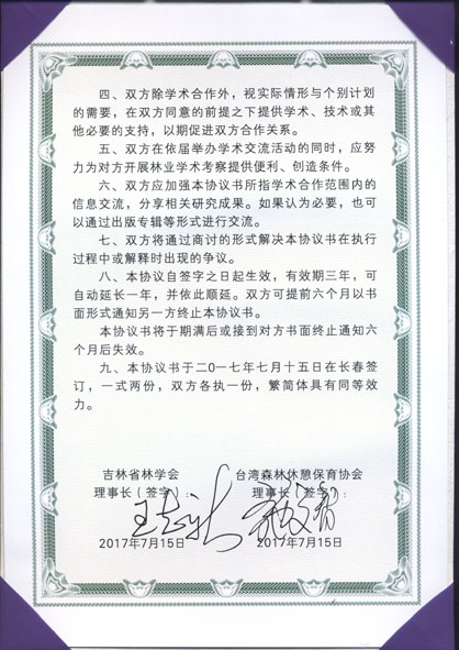 吉林省林學會與臺灣森林休憩保育協(xié)會簽署