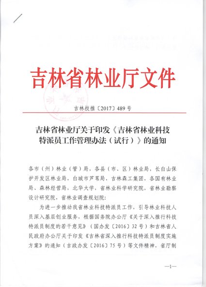 吉林省林業(yè)科技特派員工作管理辦法(試行)