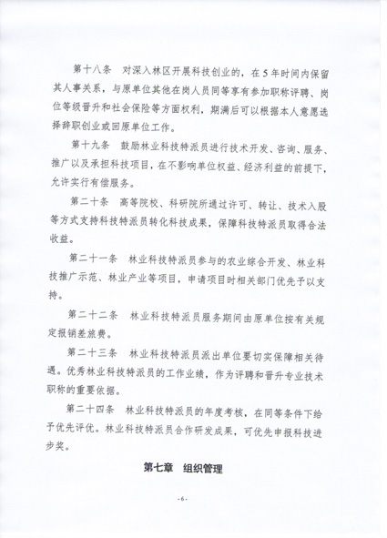 第二十三條 林業(yè)科技特派員派出單位要切實(shí)保障相關(guān)待遇。優(yōu)秀林業(yè)科技特派員的工作業(yè)績,作為評聘和晉升專業(yè)技術(shù)職稱的重要依據(jù)。