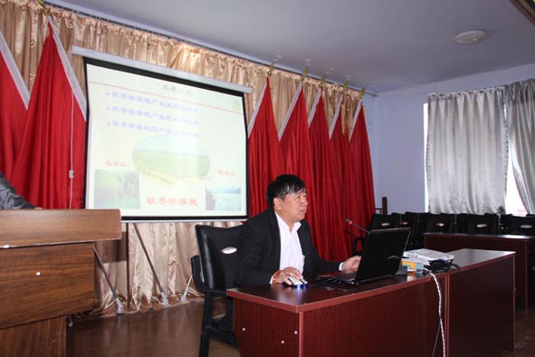 分會(huì)副理事長(zhǎng)兼秘書(shū)長(zhǎng)、集安市長(zhǎng)白山軟棗獼猴桃研究所所長(zhǎng)劉志生作研究報(bào)告