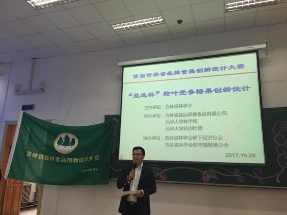 2017年10月28日,吉林省林學(xué)會在北華大學(xué)舉辦首屆吉林省森林食品創(chuàng)新設(shè)計(jì)大賽暨“益遠(yuǎn)杯”輪葉黨參糖果創(chuàng)新設(shè)計(jì)大賽。大賽由吉林省林學(xué)會主辦,吉林省益遠(yuǎn)保健食品有限公司、北華大學(xué)林學(xué)院、北華大學(xué)科創(chuàng)社團(tuán)承辦,吉林省林學(xué)會林下經(jīng)濟(jì)分會、吉林省林學(xué)會軟棗獼猴桃分會協(xié)辦。吉林省林學(xué)會理事長王志新為本次大賽開賽授旗并講話,北華大學(xué)林學(xué)院副院長劉盛、益遠(yuǎn)公司總經(jīng)理張書衡致辭,北華大學(xué)教務(wù)處副處長王繼忠宣布比賽規(guī)則,益遠(yuǎn)公司董事長孫宏接旗并宣布比賽開始。來自北華大學(xué)林學(xué)院和長春中醫(yī)藥大學(xué)、東北師范大學(xué)、吉林醫(yī)藥學(xué)院、吉林農(nóng)業(yè)科技學(xué)院、吉林化工學(xué)院等6所院校學(xué)生共270余人參加賽事活動。