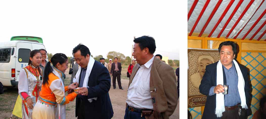 秘書(shū)長(zhǎng)王志新接受蒙古族群眾敬獻(xiàn)的哈達(dá) 秘書(shū)長(zhǎng)王志新在酒會(huì)上致辭