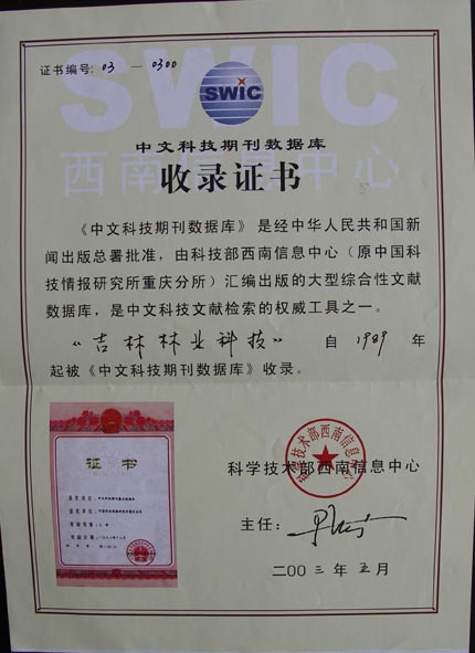 您當(dāng)前所在的位置: 首頁 >吉林林業(yè)科技 > 2003-2005各種收錄和榮譽(yù)證書